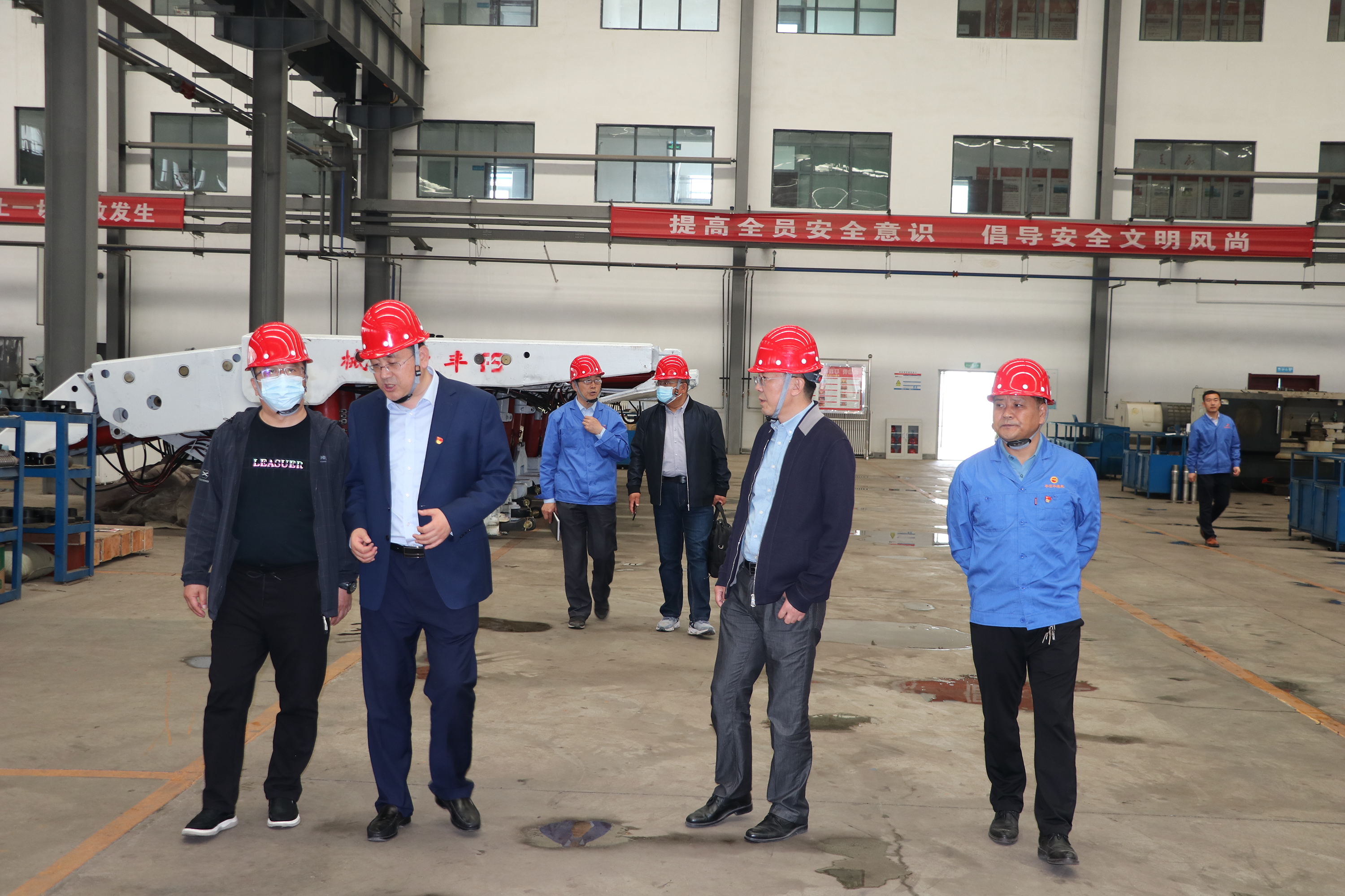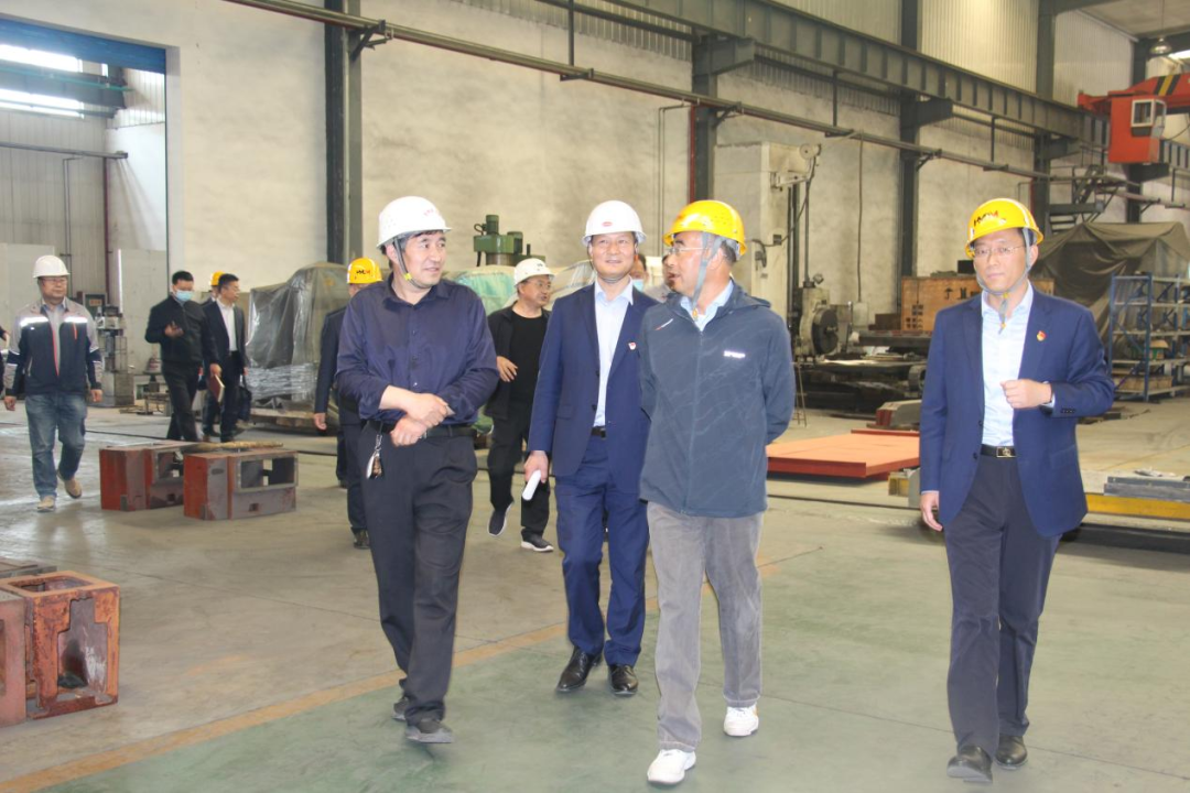 2022-05-195月19日,甘肃酒钢集团西部重工股份有限公司副总经理白斌一行来丰收机械公司考察调研。丰收机械公司领导班子成员陪同考察调研并进行座谈。(在生产作业现场考察调研)考察组一行首先进入生产车间,对丰收机械公司的生产布局,生产设备设施,作业现场,产品及性能等进