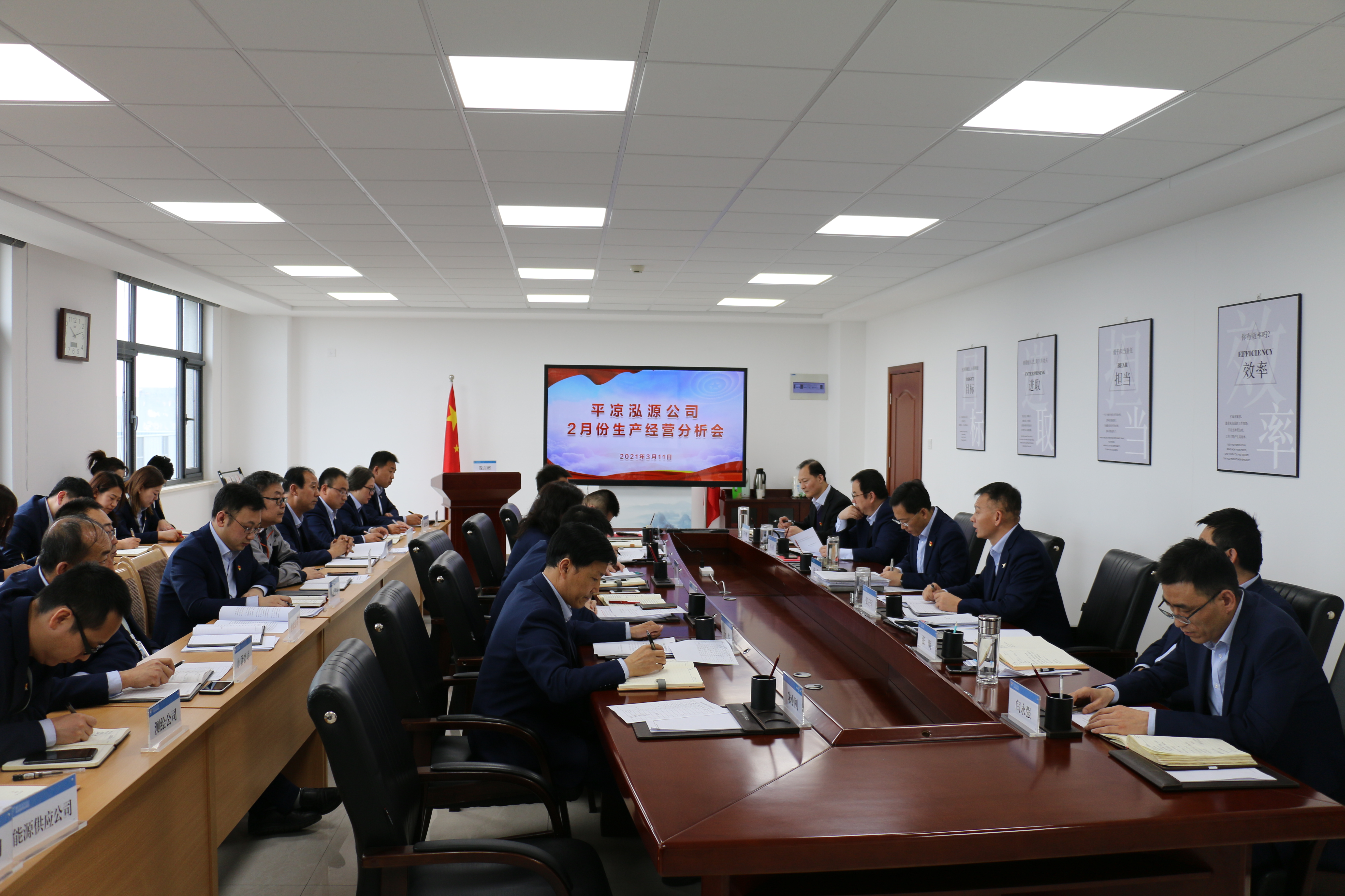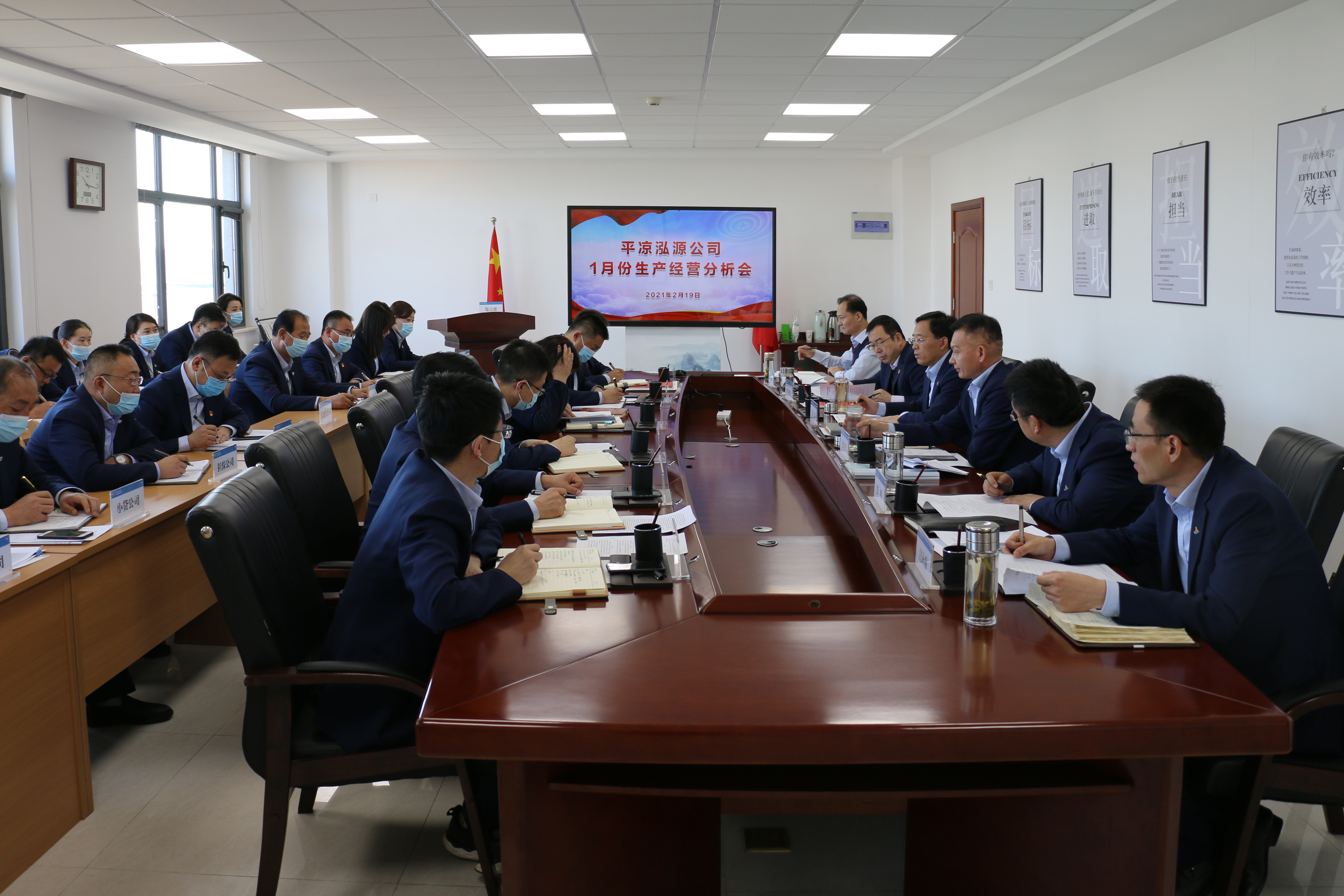 2021-02-192月19日,泓源公司召开1月份生产经营分析会议。会上,下属各公司负责人汇报了1月份生产运营情况、存在问题及下一步打算,财务人员、外派监事作了补充汇报并提出了工作建议,领导班子成员逐公司作了点评,并提出明确要求。会议指出,1月份,下属各公司主动作为,结