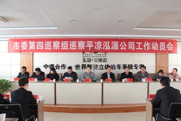 2019-03-312019年3月29日上午,市委第四巡察组巡察平凉泓源公司工作动员会在甘肃泓源麦迪迈智能立体停车有限责任公司3楼会议室召开。市委巡察办主任赵玖梅、市纪委监委派驻市农牧局纪检监察组组长刘刚、市委巡察办巡察专员赵生宝出席会议并作讲话。泓源公司党委书记、董事